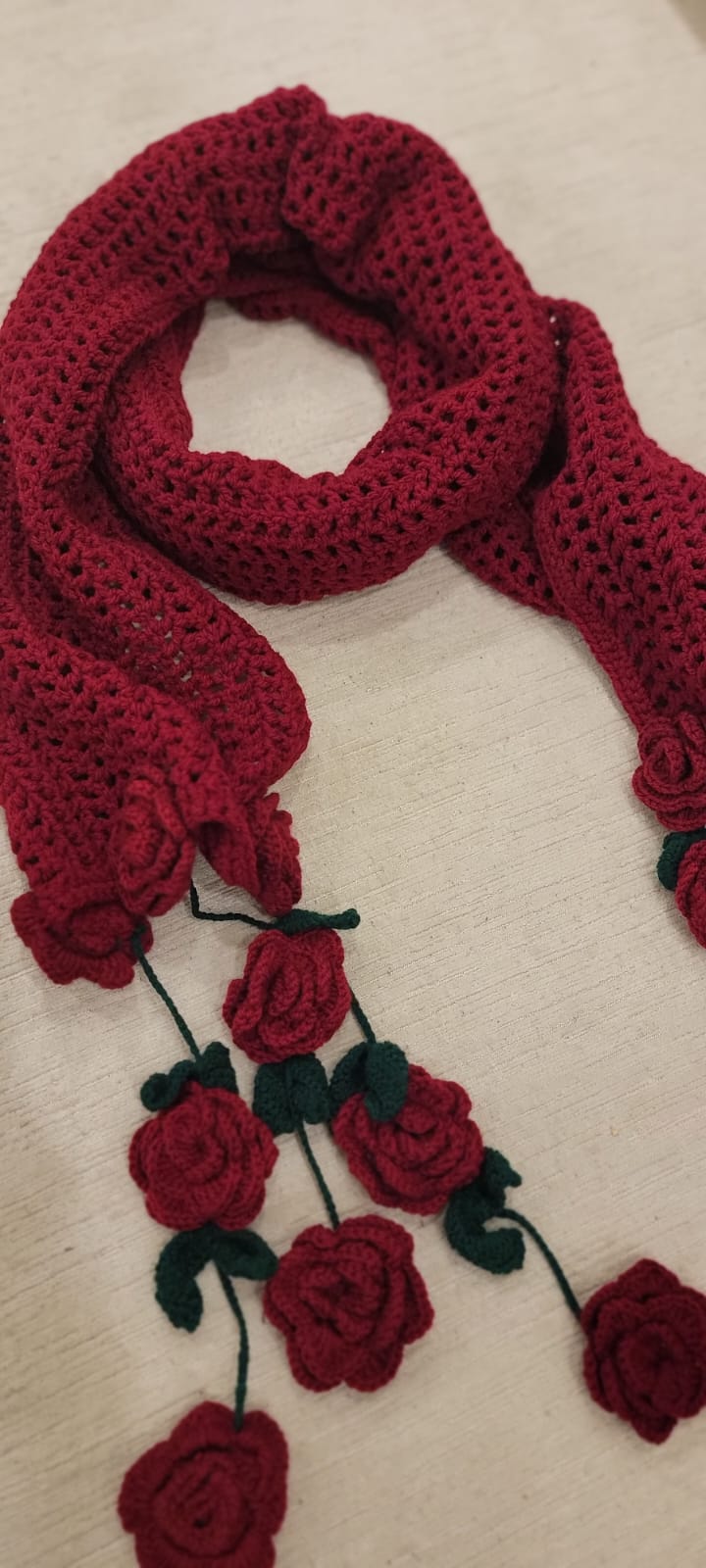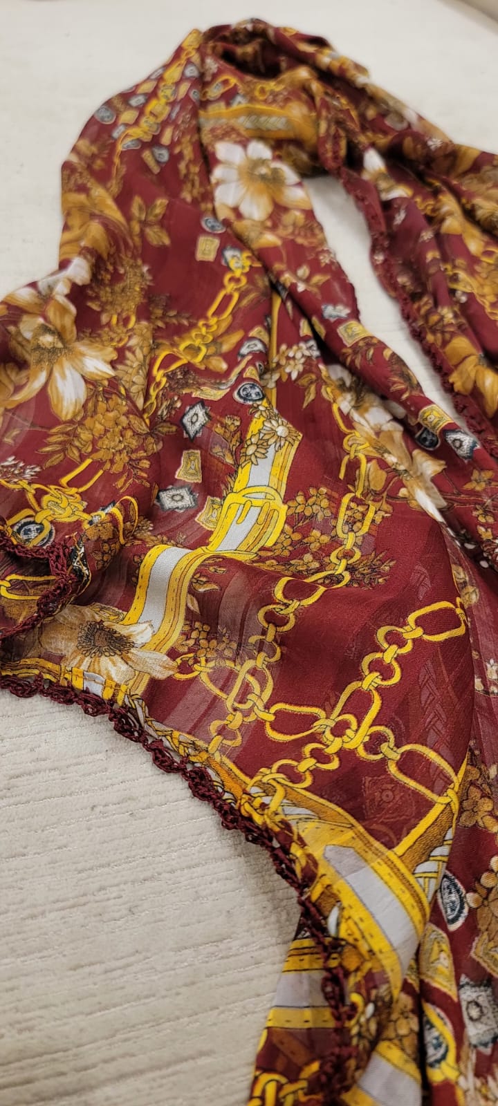 Red floral chain scarf