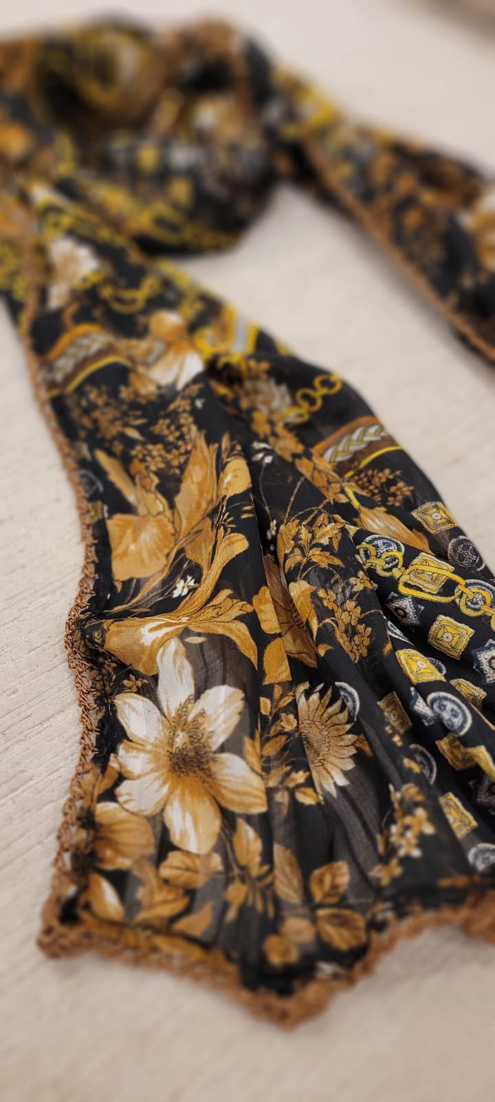 black floral chain scarf