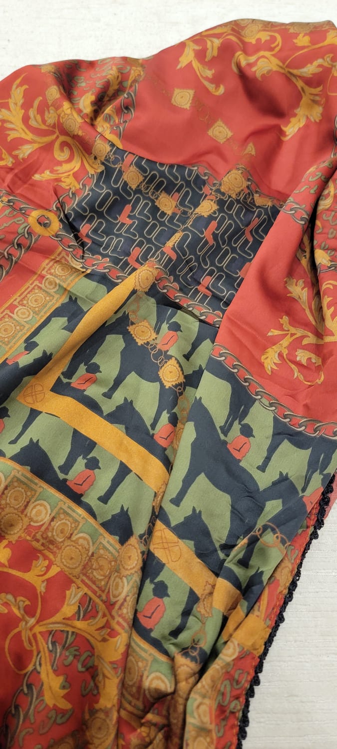 Crimson Olive Digital Silk Scarf